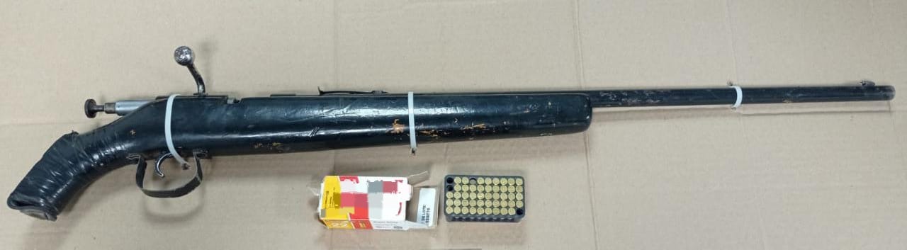 El sujeto tripulaba un vehículo Mazda 2, color blanco, en el que portaba un arma de fuego, calibre .22, además de 46 cartuchos, sin contar con documentación para su legal posesión.
