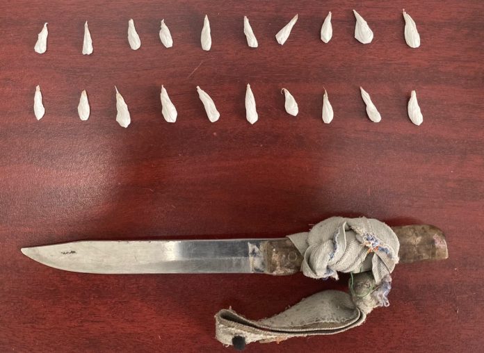 El sujeto también portaba un arma blanca, tipo cuchillo, por lo que de inmediato fue asegurado e informado de los derechos de las personas detenidas para quedar a disposición del Ministerio Público correspondiente.
