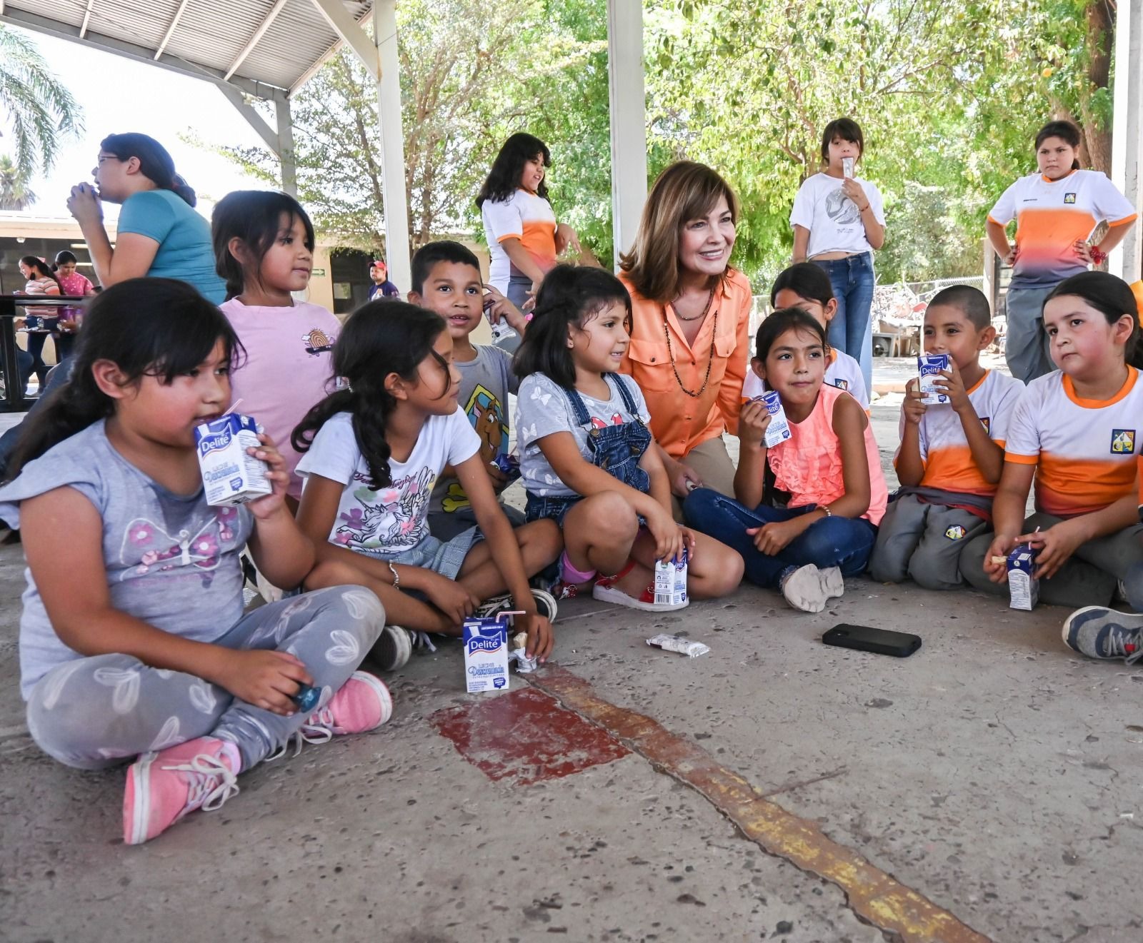 Durante la entrega en cada escuela, la Presidenta del Voluntariado de DIF platicó con las niñas y los niños, además escuchó propuestas de los pequeños para mejorar su escuela y comunidad.